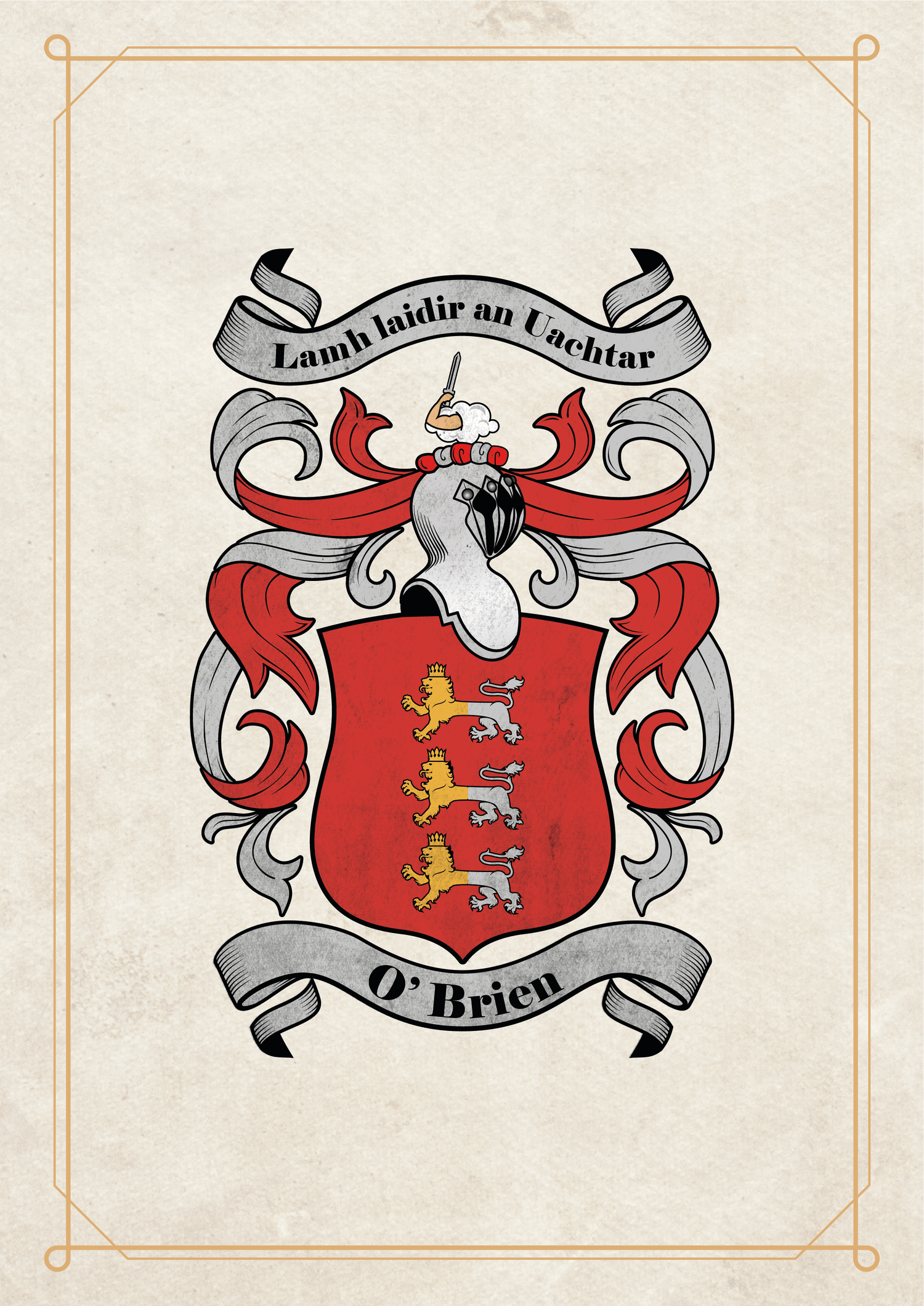 Made in Ireland - Explore our framed or unframed prints of the O'Brien family crest and history. Featuring single crests, crests for couples and much more. For all product types and gifts, please enter our full collection via the links below.